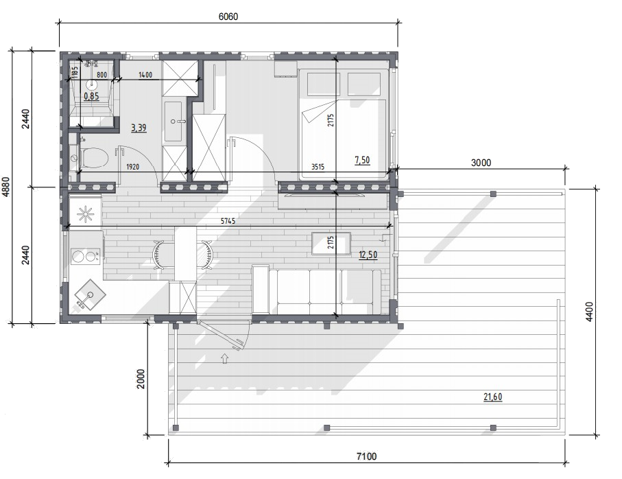| Терраса перед входом с навесом | |||